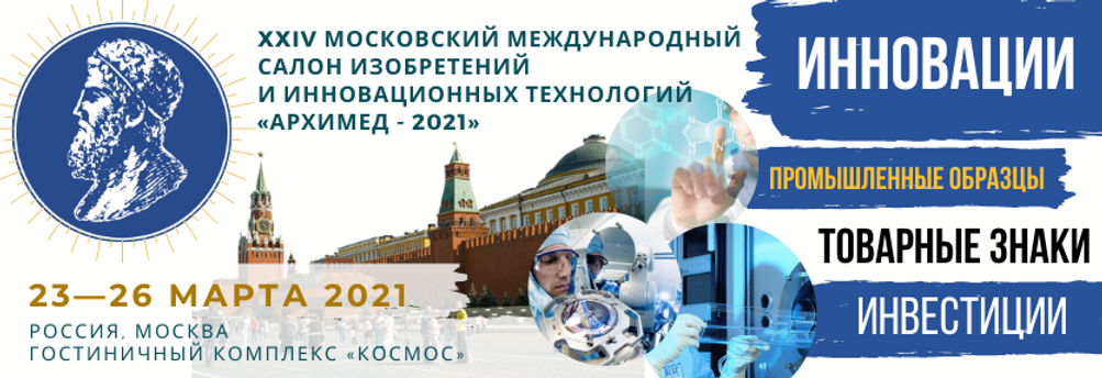 С 23 по 26 марта 2021 года в Москве на территории конгрессно-выставочного комплекса гостиницы «Космос» при поддержке Всемирной организации интеллектуальной собственности, Администрации Президента Российской Федерации, Министерства обороны Российской Федерации, Министерства экономического развития Российской Федерации, Роспатента, Международной Федерации Ассоциации Изобретателей, Торгово-промышленной палаты Российской Федерации, Министерства науки и высшего образования Российской Федерации состоялся XXIV Московский международный Салон изобретений и инновационных технологий «Архимед 2021».